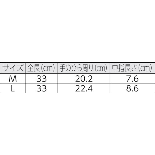 寸法(全長・手のひらまわり・中指の長さ)(cm) 全長:33cm、手のひらまわり:20.2cm、中指の長さ:7.6cm