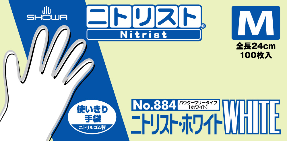 ニトリルゴム使い捨て手袋 ニトリスト・ホワイト Mサイズ 100枚 白 NO884-M