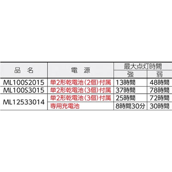 LED フラッシュライト ML100 (単2電池3本用) ML100S3015