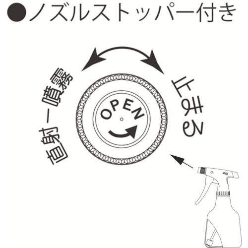 ■ノズルを回すと霧・直射・ノズルストッパーに対応可能です。