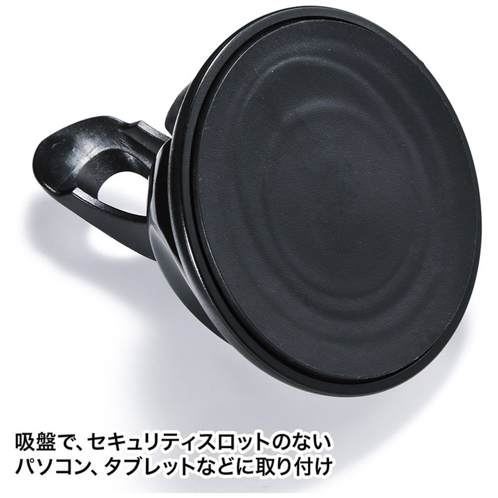 ■吸盤式になっていて、セキュリティスロットのないパソコン、タブレットなどに取り付けます。