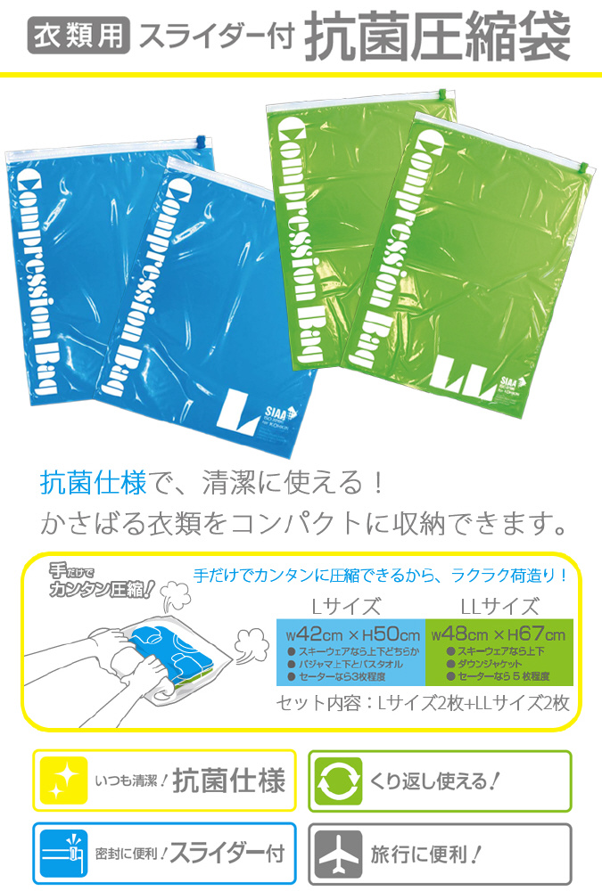 衣類用 スライダー付抗菌圧縮袋