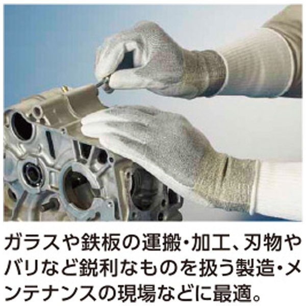 ■高強度のポリエチレン繊維の独自編みにより、指先を活かせるフィット感と高い切創強度を両立しています。