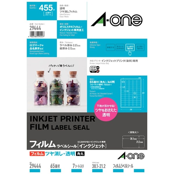 ラベルシール インクジェット用 透明 29444 [A4 /7シート /65面 /マット]
