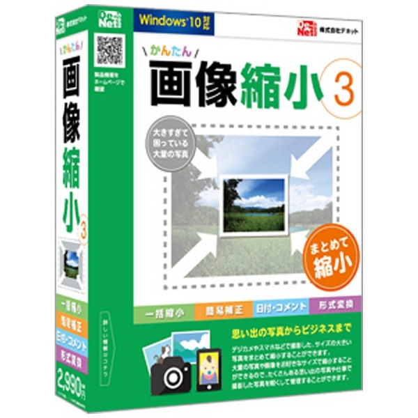 ■ 写真や画像をソフト上にドラッグ&ドロップするだけで、かんたんにサイズを縮小でき、複数ファイルの一括縮小にも対応。大きいサイズの写真や画像を、メール送信・ブログやホームページ・資料・カタログ等、用途に適したサイズに縮小可能です。さらに、日付やコメントの描画機能やファイル形式の変換機能を新たに搭載。撮影日時やコメントの表示と縮小作業が同時にでき、各作業の手間を軽減できます。Windows 10 に対応しています。