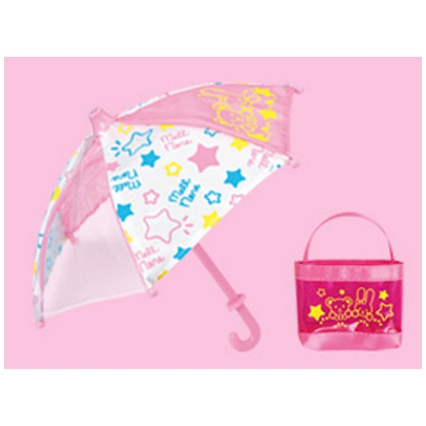 水玉模様の可愛いデザインのかさは本物みたいに開閉できるよ。雨の日にぴったりなビニールバッグ付き!