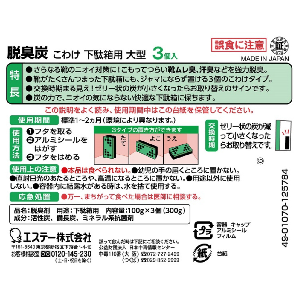 脱臭炭 こわけ 下駄箱用 靴箱用 脱臭剤 大型 100g×3個入