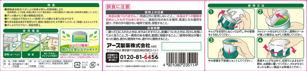 【用途】屋内塵性ダニ類の忌避