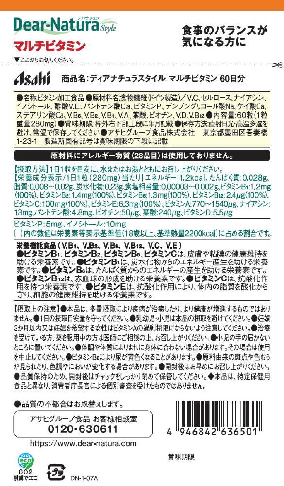 【軽減税商品】Dear-Natura Style(ディアナチュラスタイル)マルチビタミン 60日分(60粒入)〔栄養補助食品〕