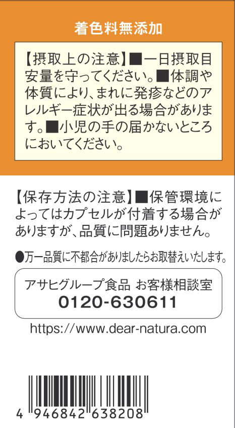 仕様2 飲み方:1日2粒を目安に、水またはお湯とともにお召し上がりください