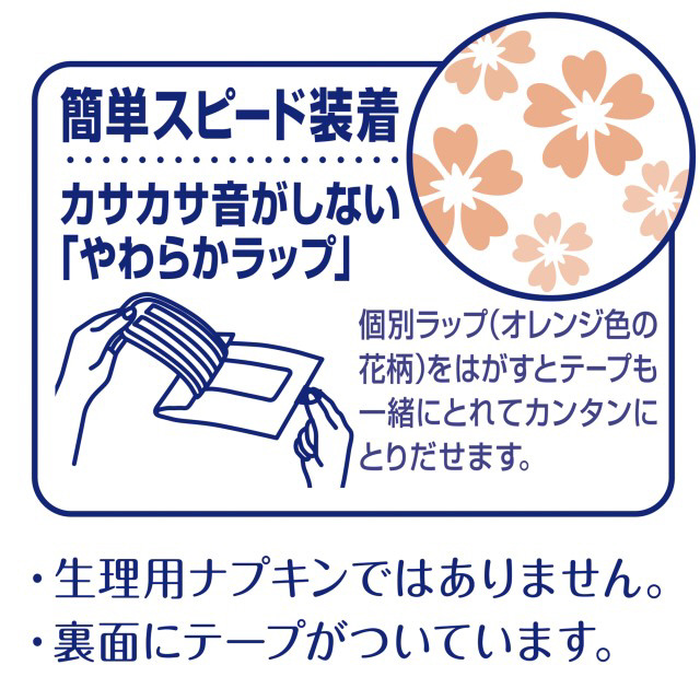 水分ジェル化ポリマー配合の真ん中ふっくら吸収体がヨレずに体にフィットするから多くてもモレ安心。なみなみシートでサラッサラ!消臭ポリマー※配合。やわらかラップ。※アンモニアについての消臭効果がみられます。