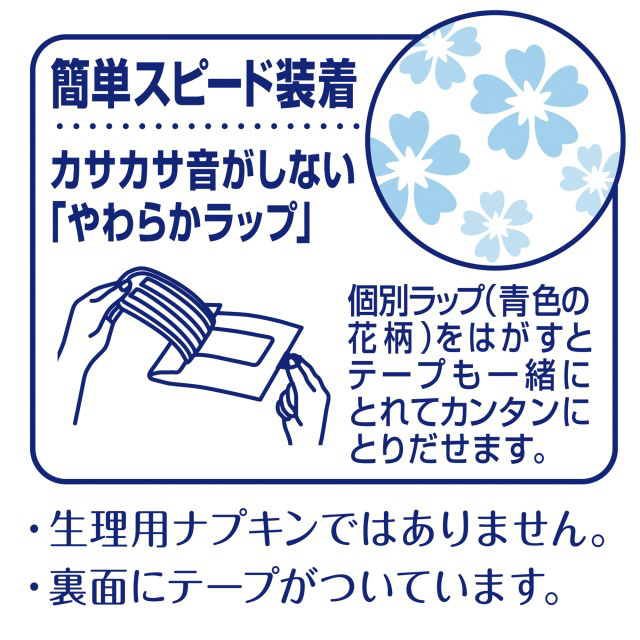 スリムでもしっかり吸収!前後の薄さ約4mmですっきり快適なつけ心地。真ん中ふっくら吸収体でしっかり吸収!消臭ポリマー※配合。やわらかラップ。※アンモニアについての消臭効果がみられます。