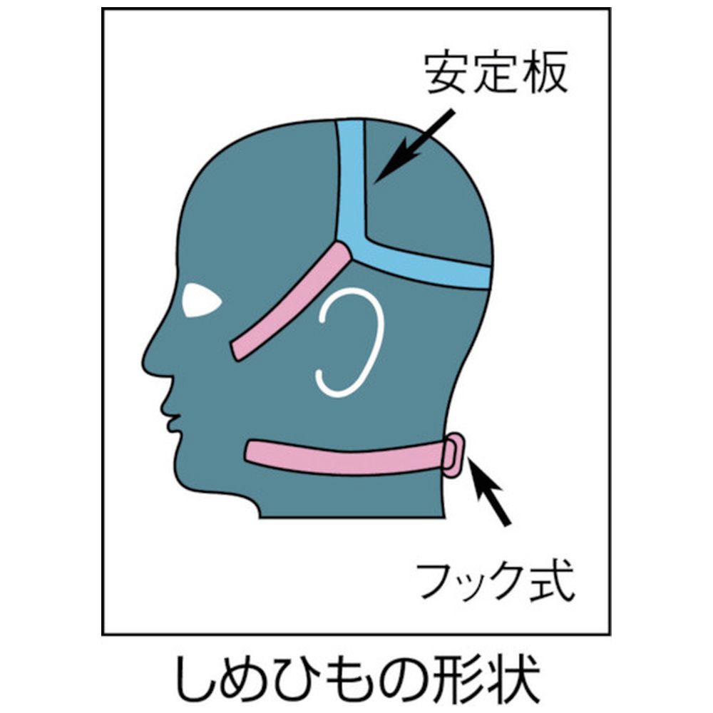 ■片手で素早く、簡単にしめひもの調節が行えるため、ヘルメットを着けたままでもマスクの着脱が可能です。