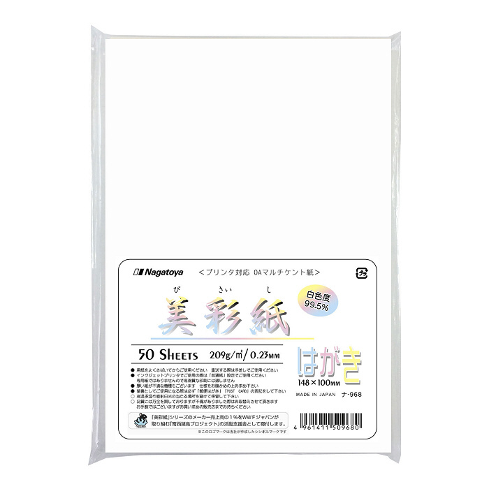 209g/m2(はがきサイズ×50枚) ナ-968 美彩紙(びさいし)シリーズ ホワイト