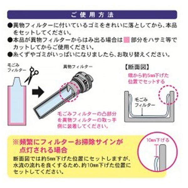 異物フィルターにたまる糸くず・髪の毛・細かなゴミをしっかりキャッチ!