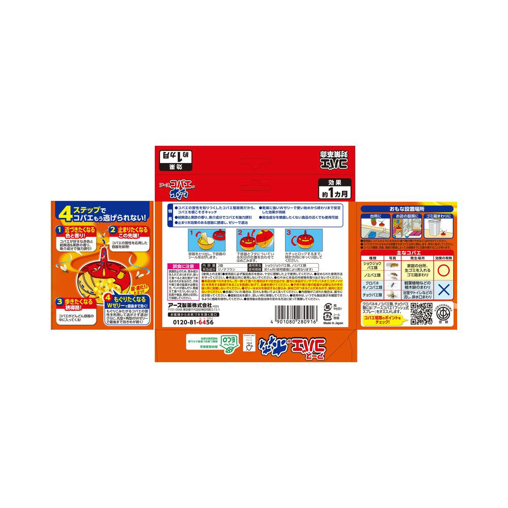 2種類のゼリー(丸型+角型)を配合することで効果がUP。コバエが好きな香りで誘い、止まり木効果で止まらせ、誘導路でもぐらせ退治するコバエ捕獲器。2個入