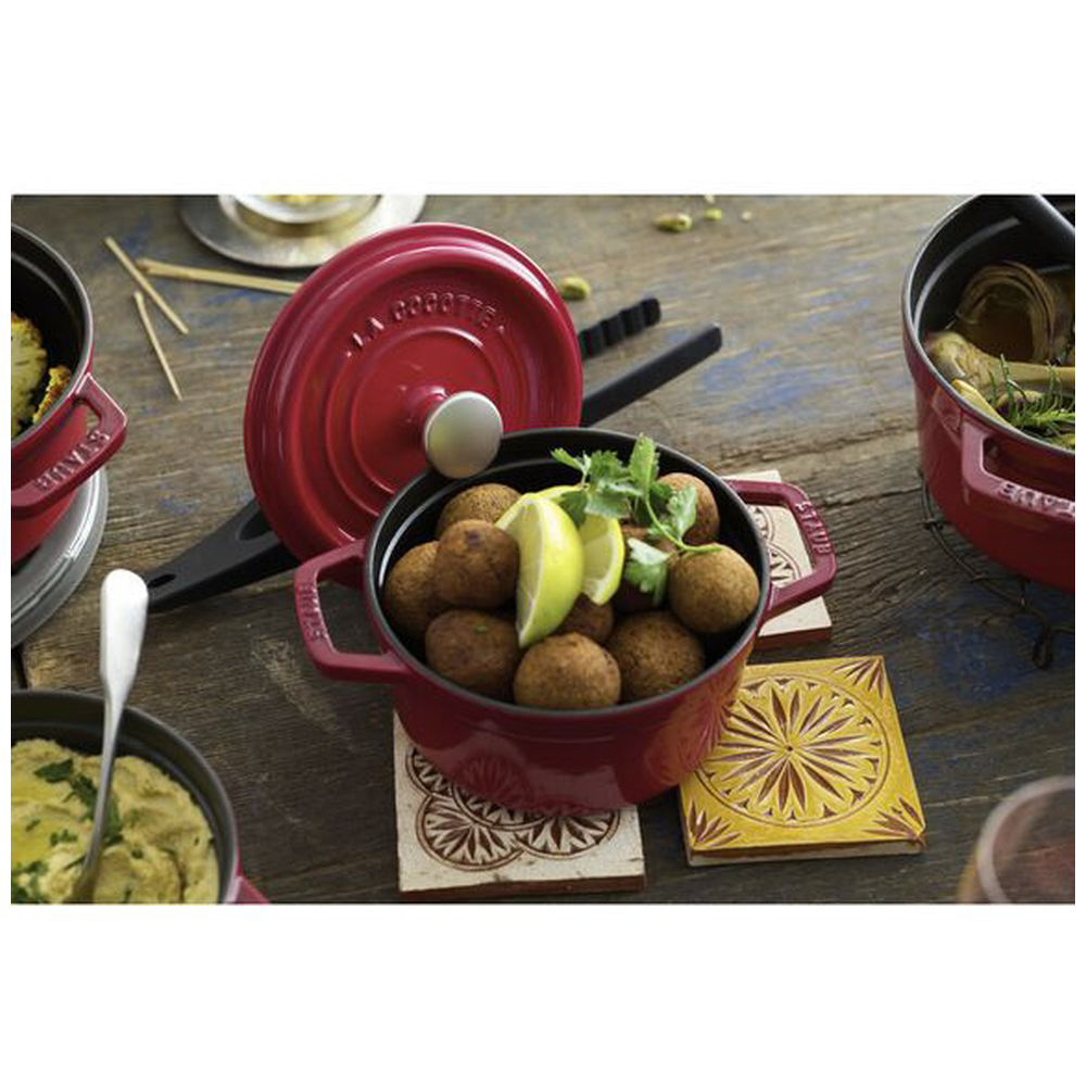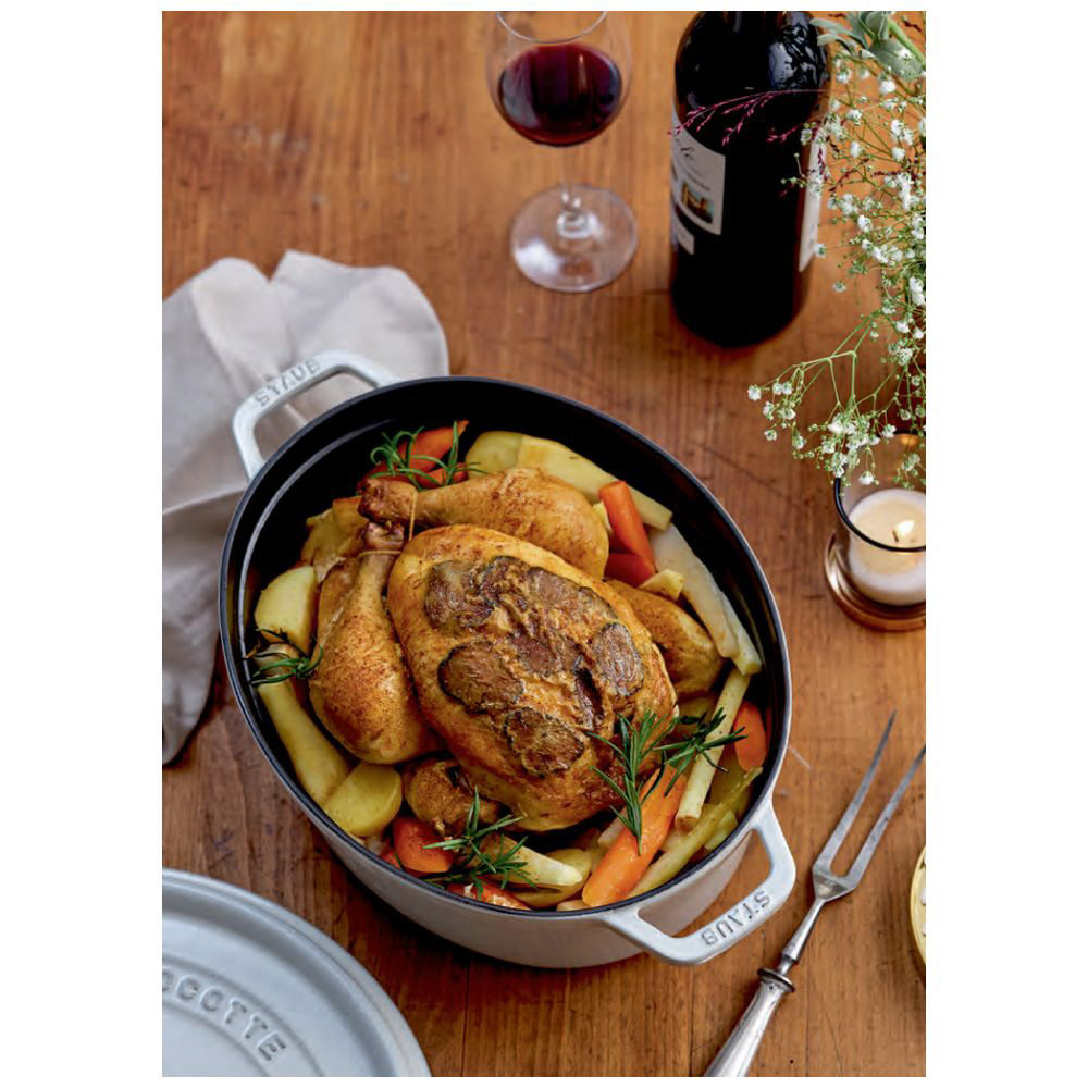 ストウブ独自の「セルフ・ベイスティング・システム」で本物の味を。細長い形状の肉や魚、野菜などの食材をそのまま調理できます。