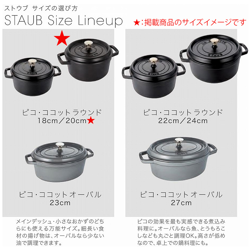 ストウブ独自の「セルフ・ベイスティング・システム」で本物の味を。ストウブ鍋のベーシックライン。素材本来の旨味を最大限に引き出す「アロマ・レイン」機能を実感できるココットです。