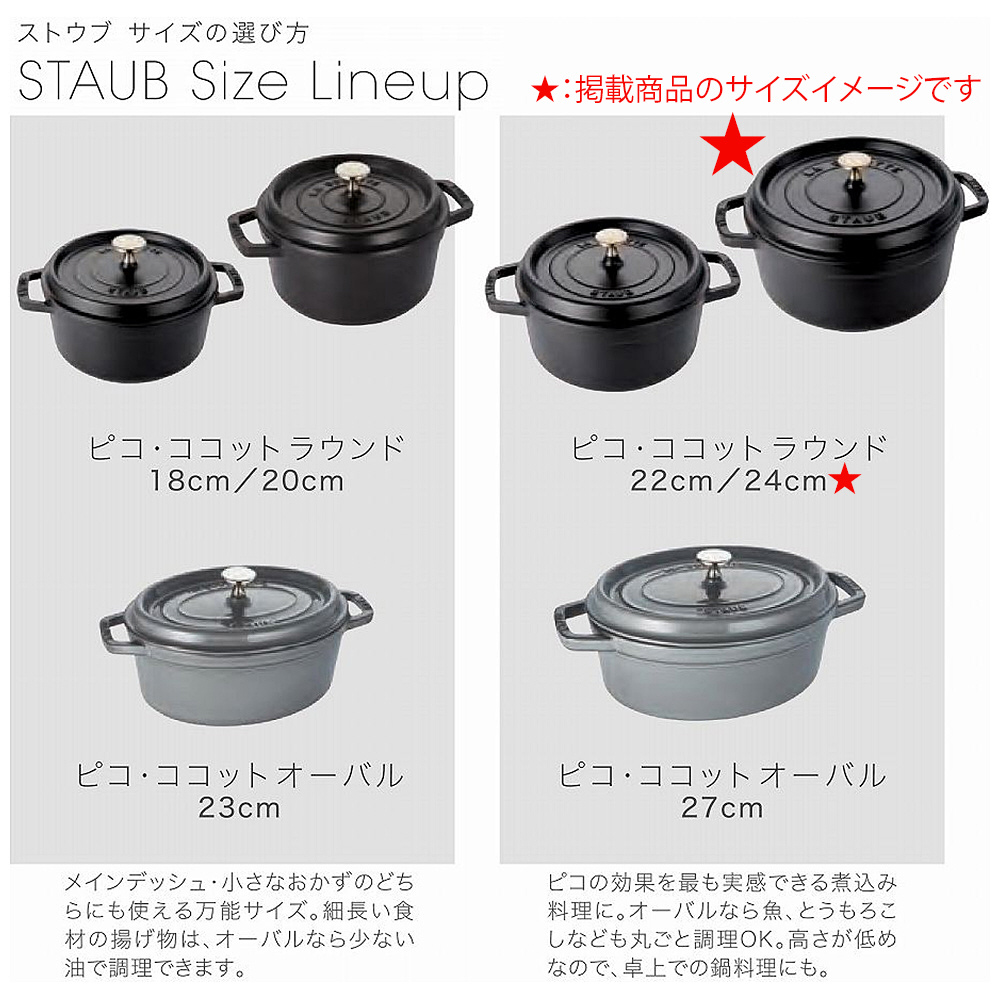 ストウブ独自の「セルフ・ベイスティング・システム」で本物の味を。ストウブ鍋のベーシックライン。素材本来の旨味を最大限に引き出す「アロマ・レイン」機能を実感できるココットです。