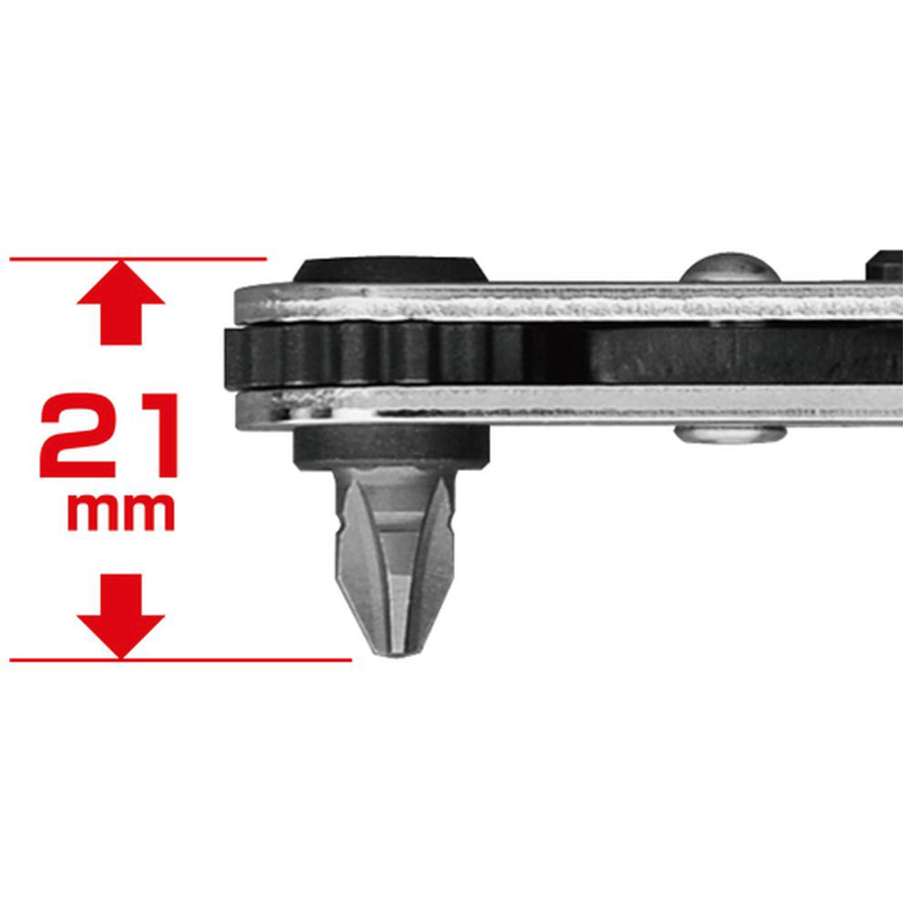 超薄型ヘッドでのラチェット機構採用で、より狭い場所での作業に便利です。