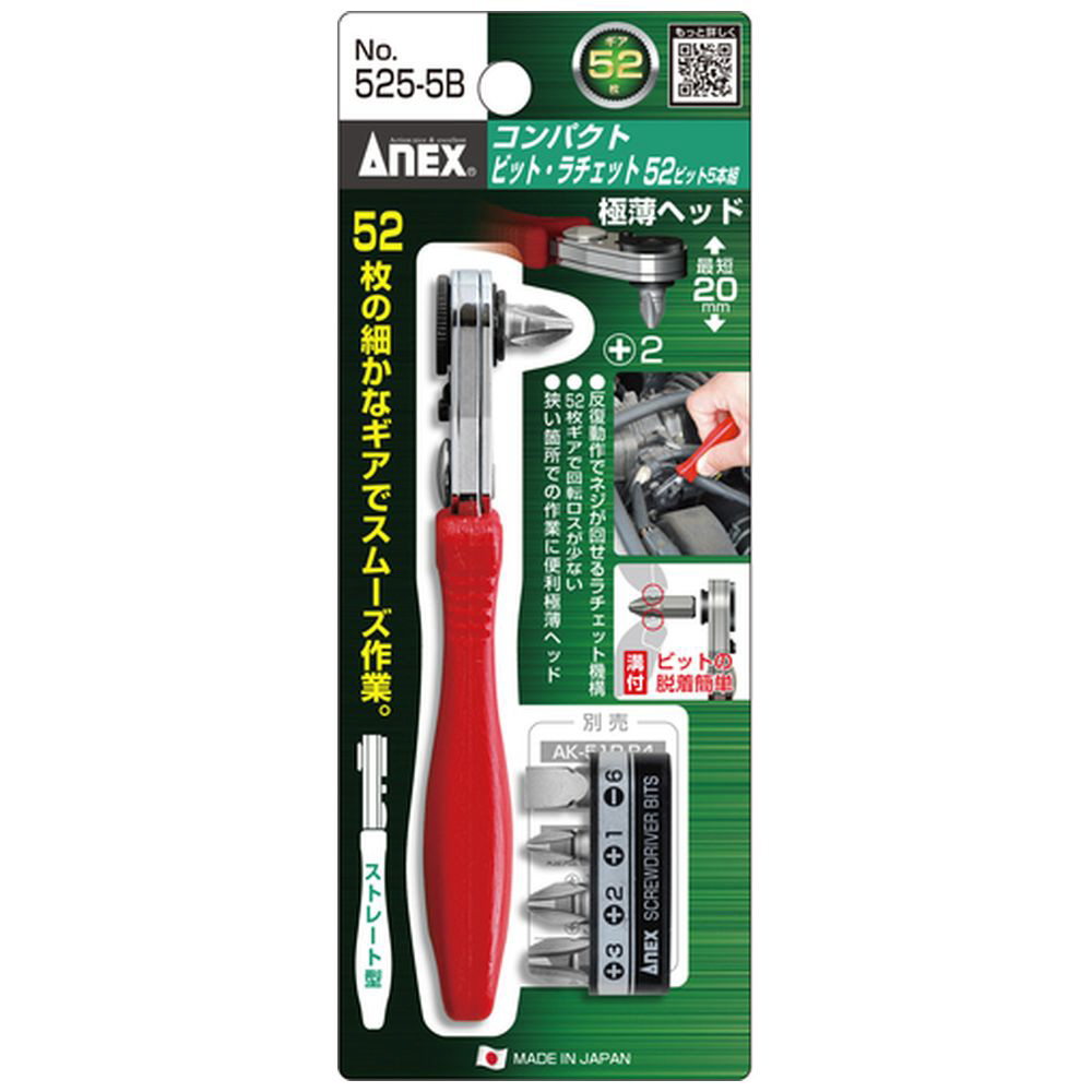 アネックス コンパクトビット・ラチェット52 ビット5本組 ストレート型 525-5B