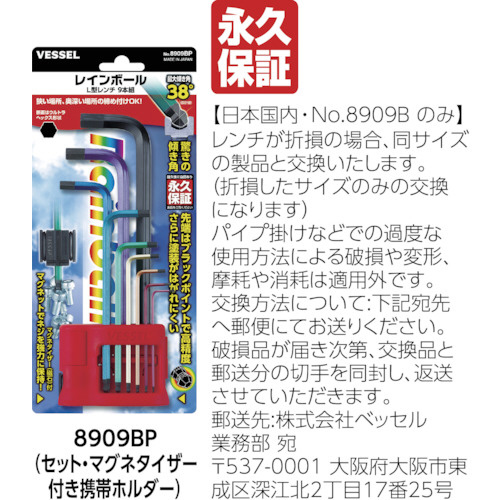 ベッセル レインボールL型レンチ 8900BP 対辺4 8900BP4