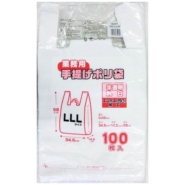業務用手提げポリ袋LLL エンボス加工 マチ付 白 RB-LLLW [100枚 /半透明]