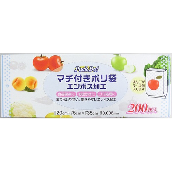 Pack Do!(パックドゥ)マチ付きポリ袋 エンボス加工 PD-F200 200枚入 半透明