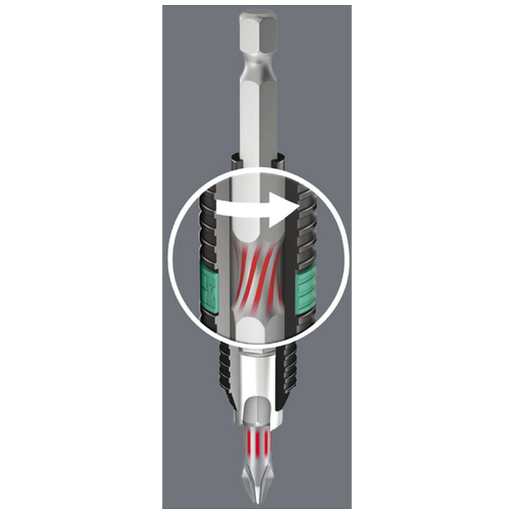 専用のビットホルダ(053923)と併用することで、3つのトーション(トライトーション)が作用し、ビットの長寿命化を実現しています。