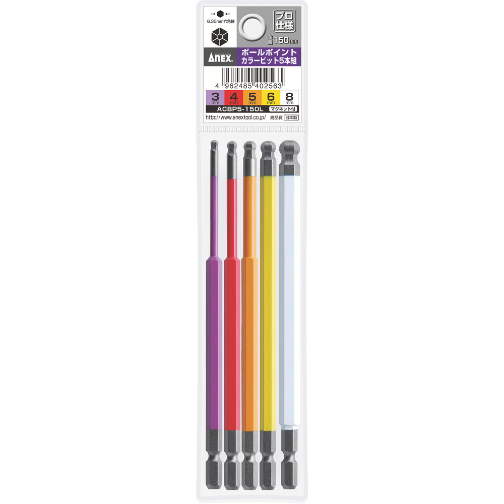 アネックス ボールポイントカラービット5本組 全長150mm ACBP5-150L