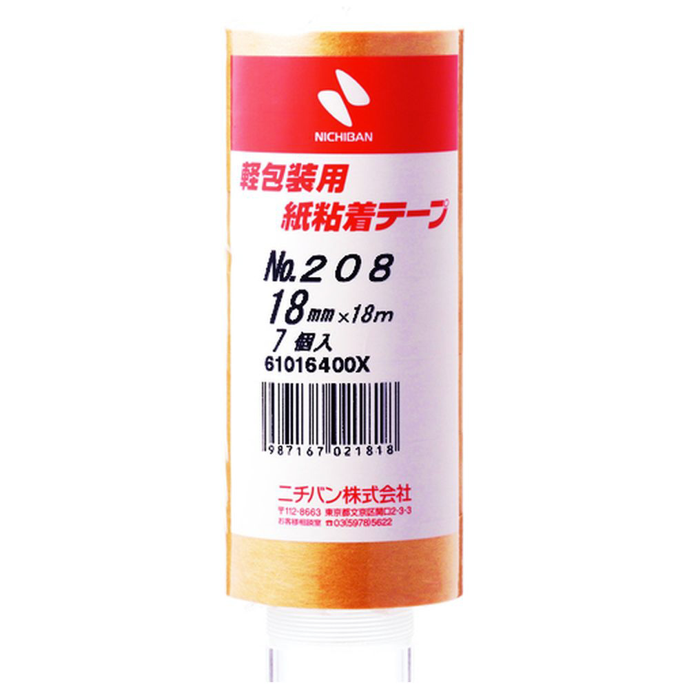 紙粘着テープ 7巻入(幅18mm/長さ18m) ブラウン 208H18