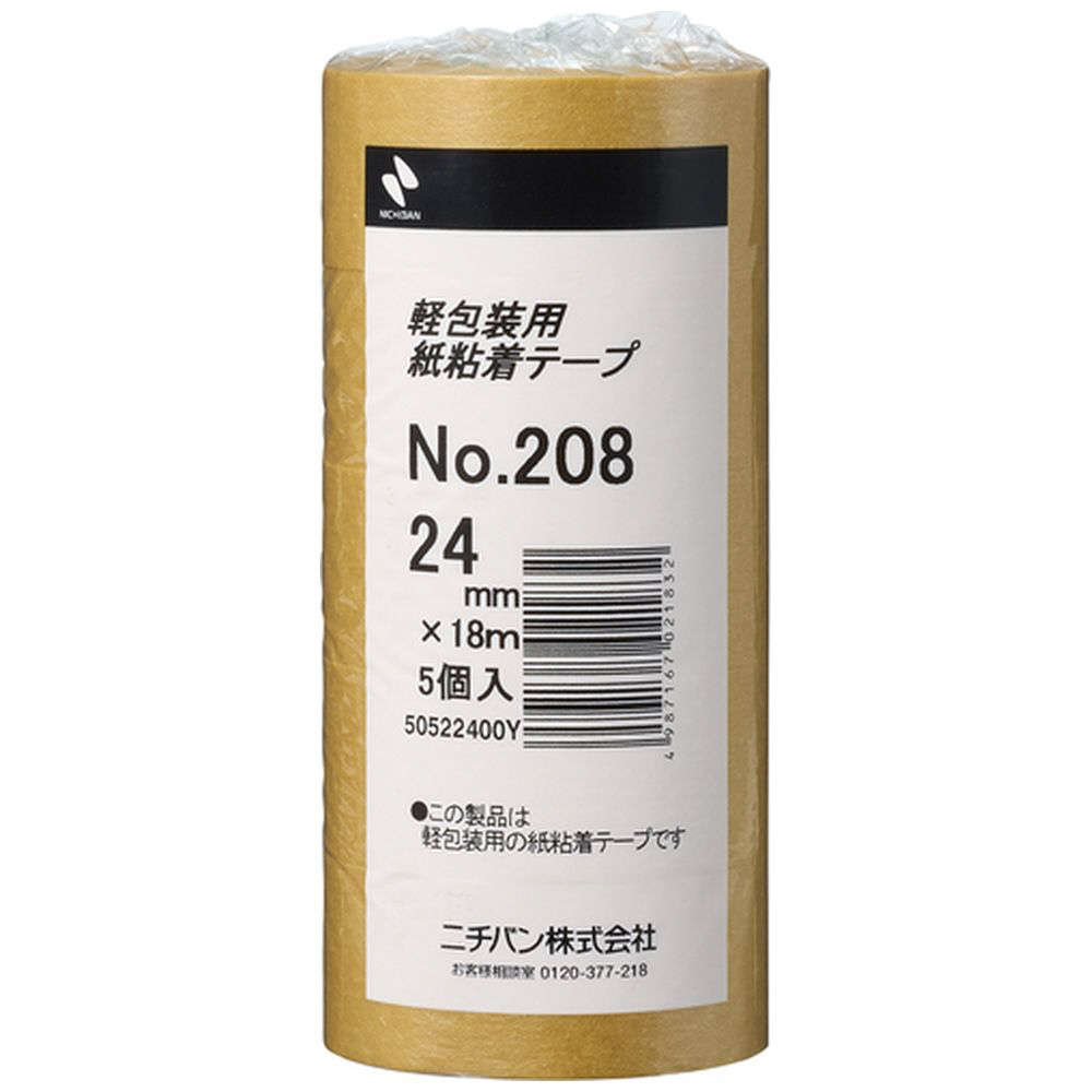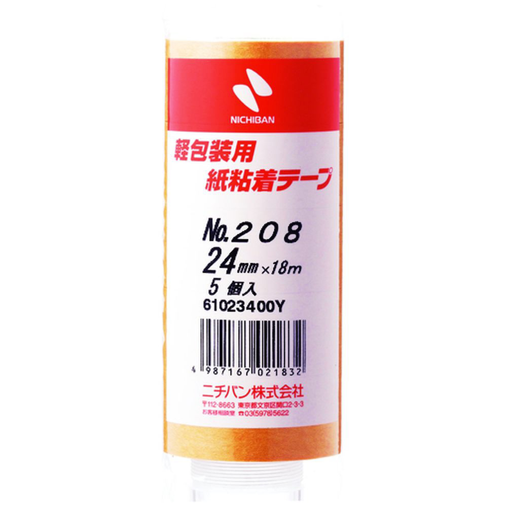 紙粘着テープ 5巻入(幅24mm/長さ18m) ブラウン 208H24