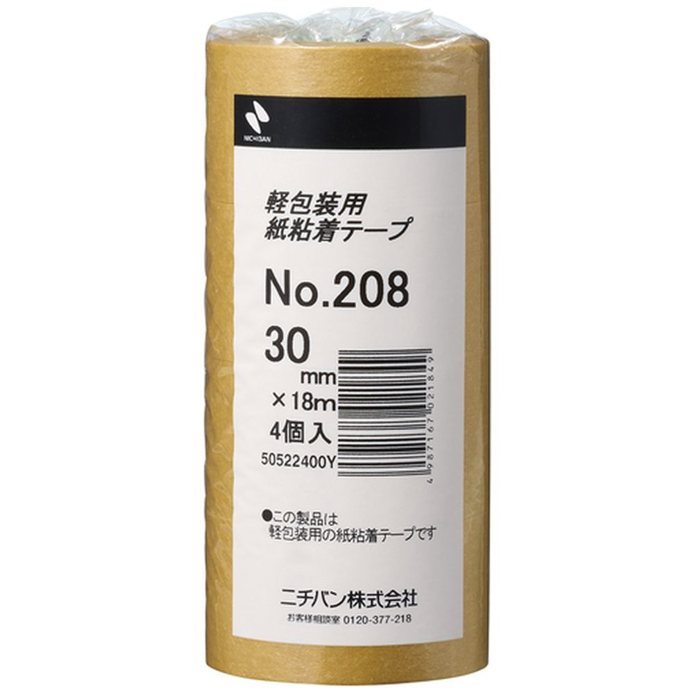 紙粘着テープ 4巻入(幅30mm/長さ18m) ブラウン 208H30