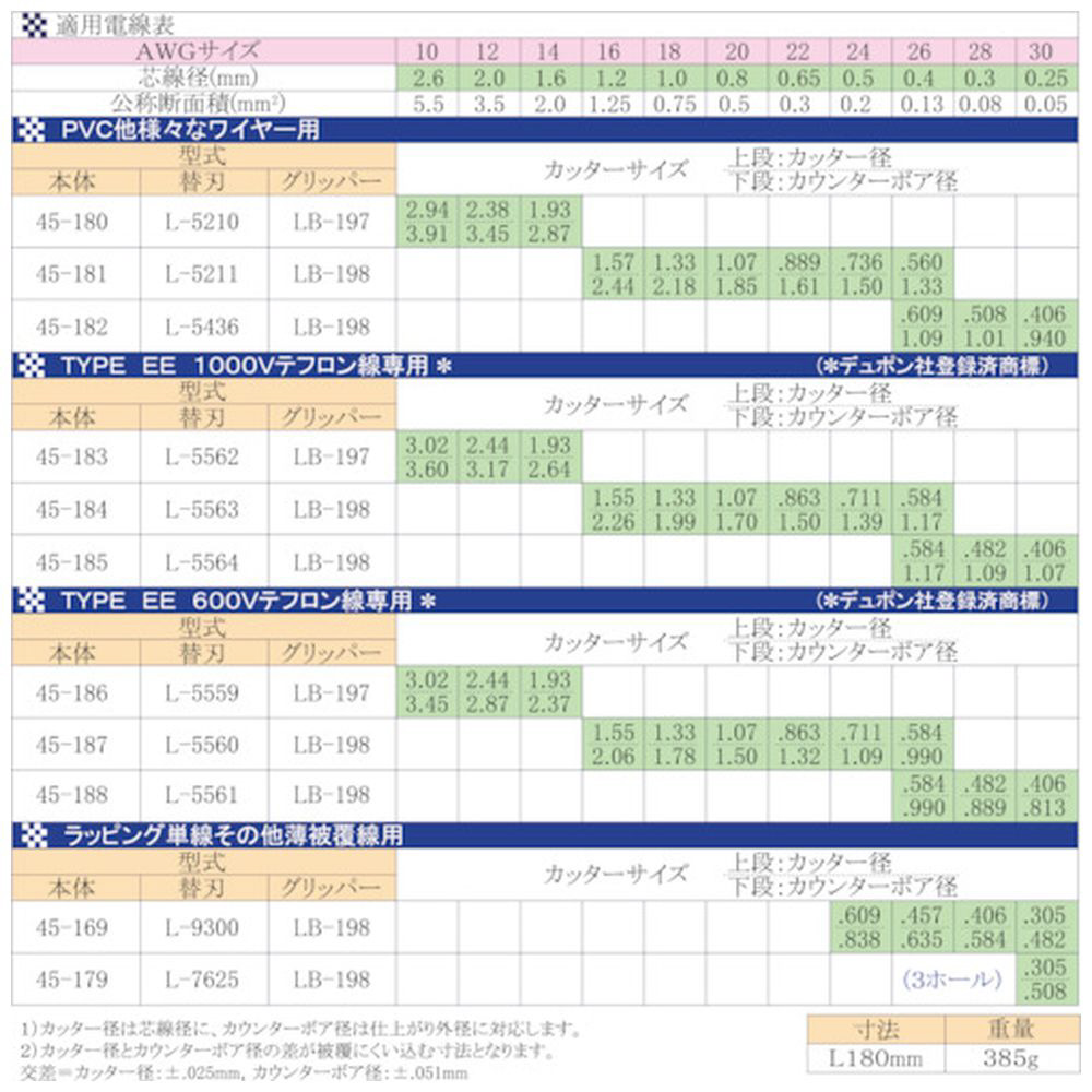 テフロン線、ETFEなど硬質、薄被覆の電線に最適です。