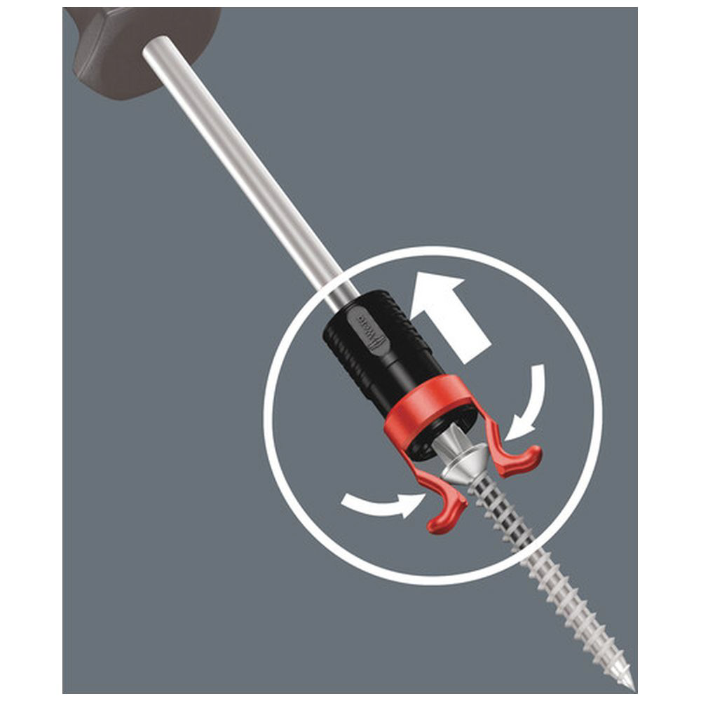 ■ドライバーの先端に装着することで、ネジの締め付け・緩め作業時に、二つのアームがネジを保持します。