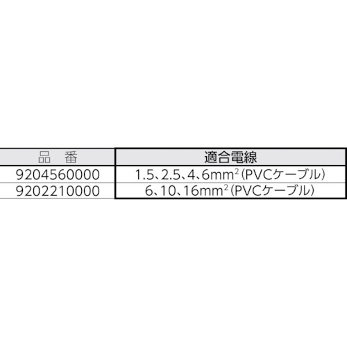 ・適合電線: 1.5、2.5、4、6[mm^2](PVCケーブル)