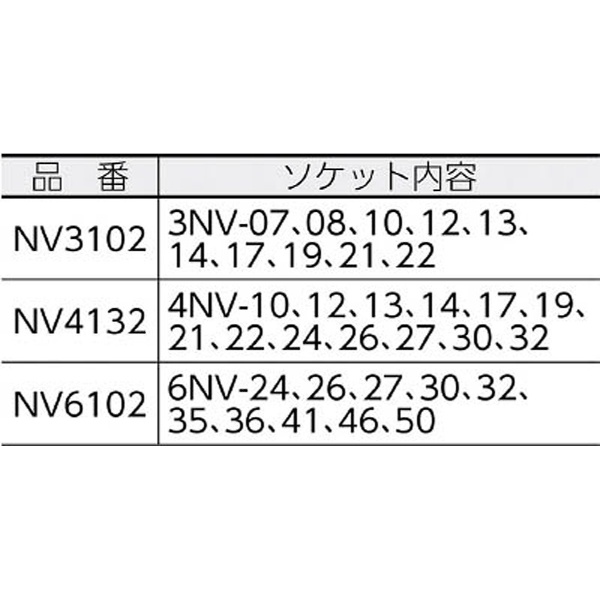 ・ソケット内容: 4NV-10、12、13、14、17、19、21、22、24、26、27、30、32
