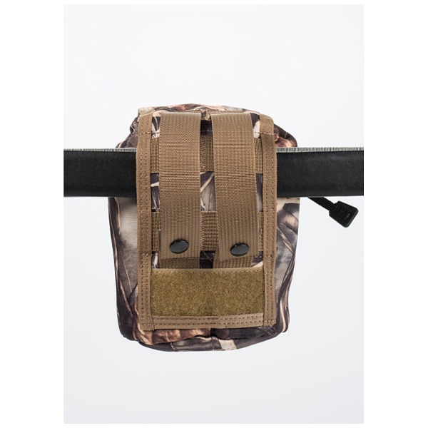 ■ポーチ背面にはモールシステム対応のストラップ・固定用ウェビングと、ベルトへの装着用のベルトループが備え付けられており、撮影時の持ち運びに便利です。