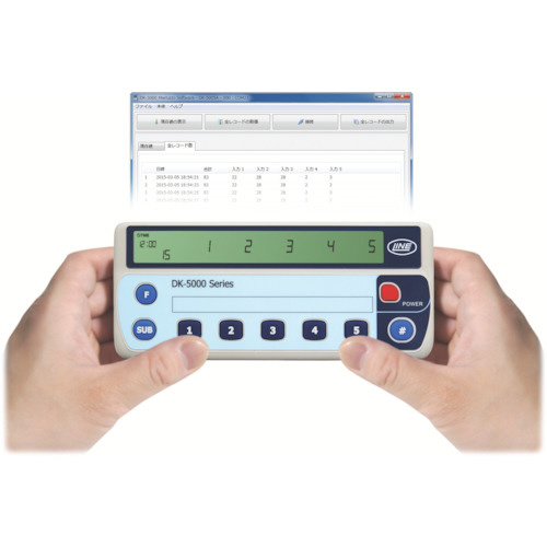 仕様 ■計数範囲:0〜9999 ■縦(mm):70 ■横(mm):170 ■厚み(mm):25 ■ボタン数:5連 ■ディスプレイ:7セグメントLCD液晶 ■最大キー入力回数:48000回 ■データ通信:USB micro-B ■電源:単4乾電池×4個(別売)/USBケーブル、ACアダプタ(オプション) ■原産国:フィリピン ■質量:130G