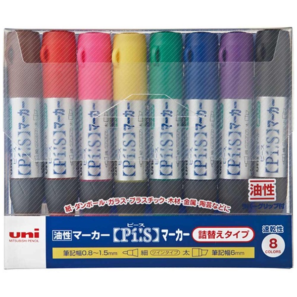uni 油性ツインマーカー細字丸芯太字角芯 8色 PA152TR8C