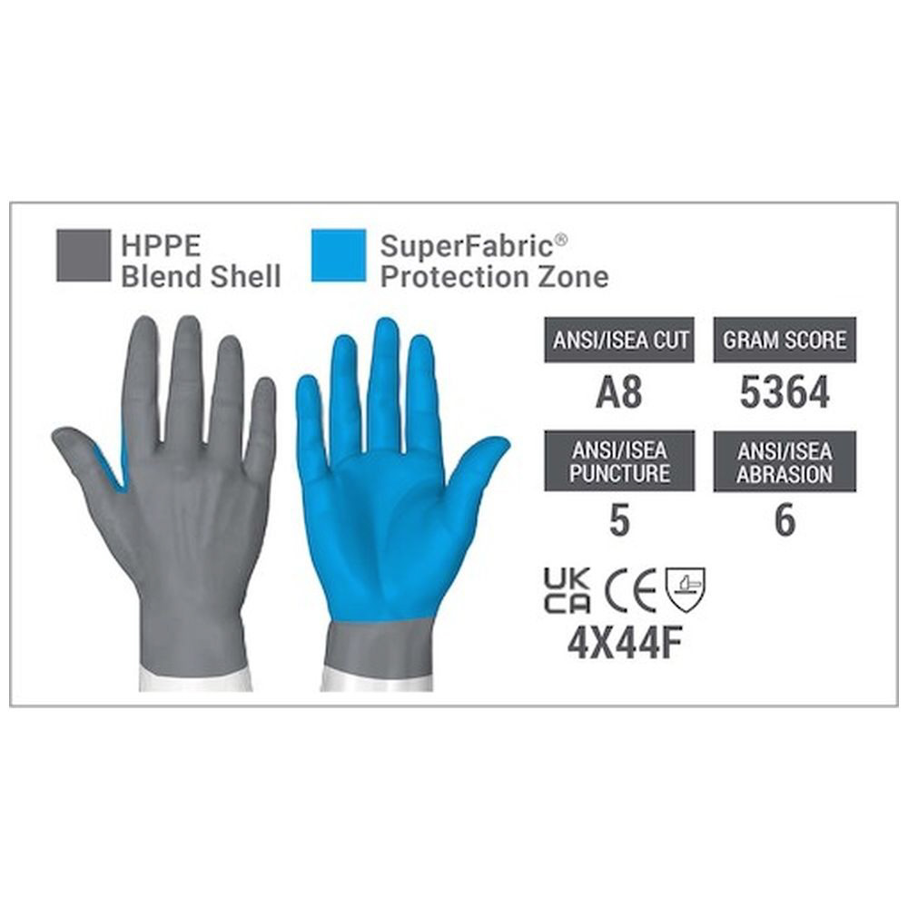 ・EN388: 2016規格: 耐摩耗レベル4、耐切創レベルX、耐引裂レベル4、耐突刺レベル4、EN ISO耐切創レベルF