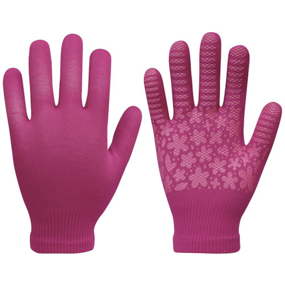カラフルな色合いと花柄のすべり止めがついた女性向け手袋です。