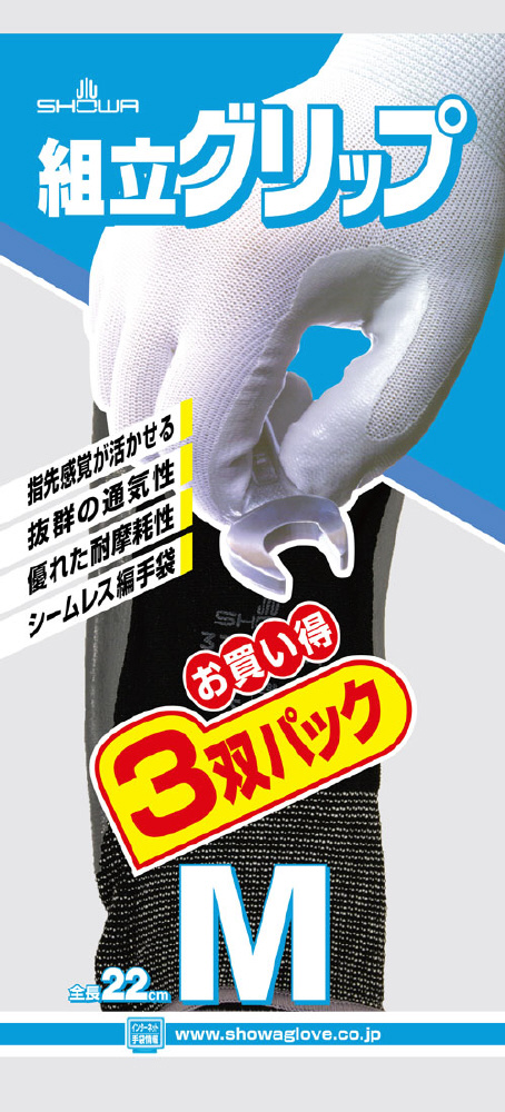 組立グリップ 3双パック M ブラック NO370-M3PBK