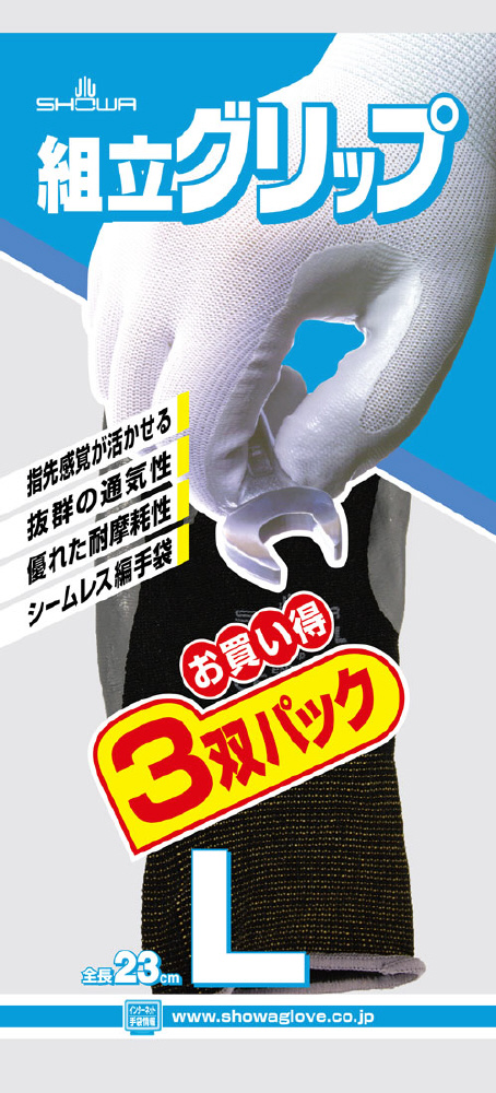 組立グリップ 3双パック L ブラック NO370-L3PBK
