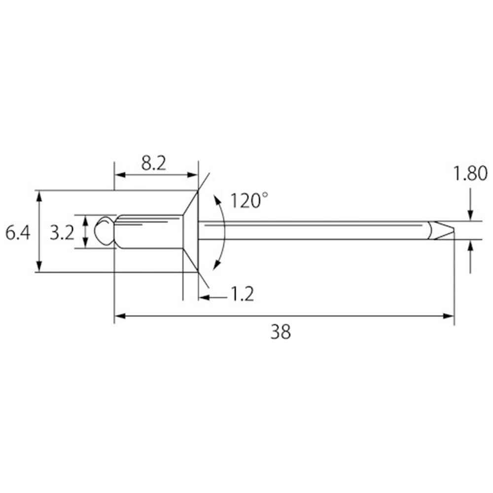 仕様 ■かしめ板厚(mm):1.6〜4.8 ■リベット長(mm):8.2 ■フランジ径(mm):6.4 ■リベット径(mm):3.2 ■下穴径(mm):3.3〜3.4 ■せん断荷重(N):970 ■引張荷重(N):1360 ■【材質/仕上げ】 リベット本体(フランジ):アルミ(A5154) マンドレル(シャフト):スチール(炭素鋼) ■原産国:日本 ■質量:1.05KG