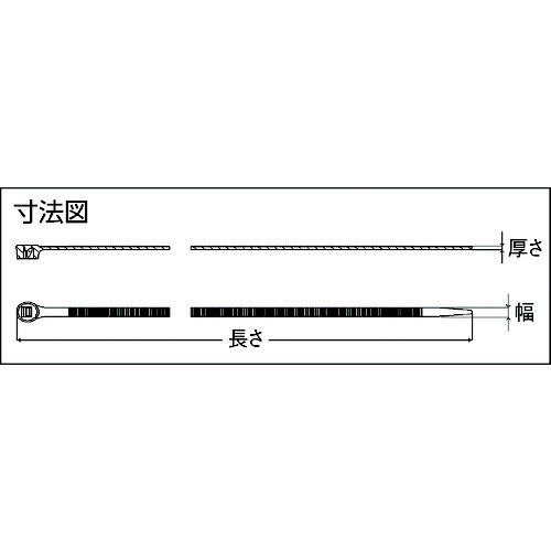 仕様 ■色:白 ■幅(mm):1.9 ■長さ(mm):100 ■厚み(mm):1 ■最大結束径(mm):24 ■引張強度(N):110 ■最小結束径(mm):1.5 ■屋内用 ■使用温度範囲:-25〜60℃ ■【材質/仕上げ】 ナイロン66 ■注意・屋内で使用してください。・ナイロン製品は乾燥し、含水量が低下すると折れやすくなりますので、開封後はお早めにご使用ください。・開封後、保管する場合は袋を密閉してください。・厳寒期はナイロン製品が固まりやすくなりますので、室温に戻してからご使用ください。 ■原産国:イタリア ■質量:26G