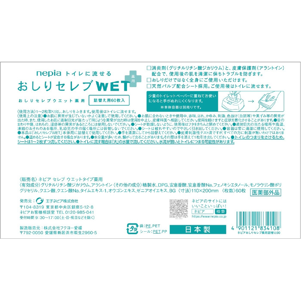 ネピア(nepia)おしりセレブ WET 薬用 つめかえ用 無香料 60枚入り [ウェットティッシュ] ネピアおしりセレブ