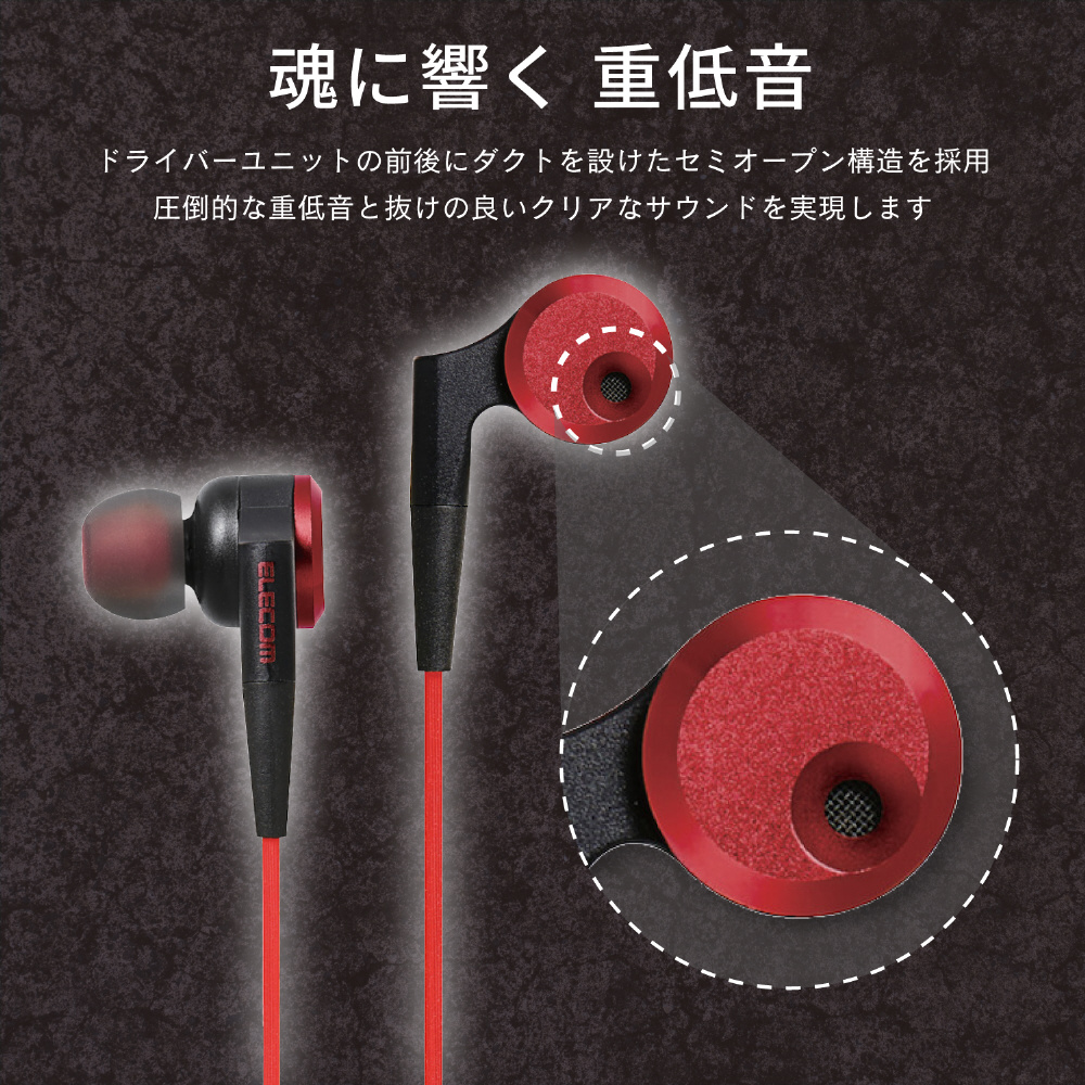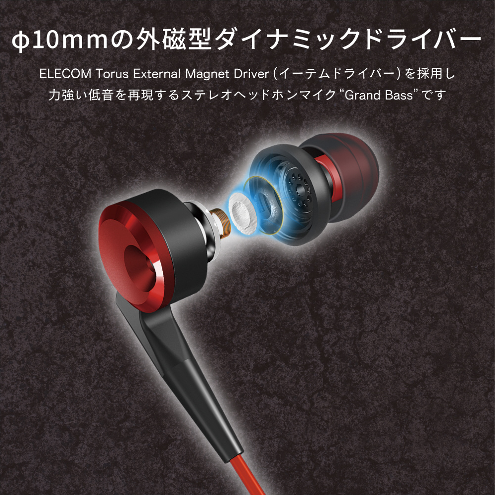 新開発Φ10.0mm「ETEM Driver」搭載 (ELECOM Torus External Magnet Driver) 外磁型とすることでφ8.3mmの大型ネオジムマグネットを採用した強力磁気回路採用WFCペーパーとPUの複合振動板を採用 WFCペーパーとPUの複合振動板を採用することで、迫力のある重低音を再生ドライバーユニットの前後にダクトを設けたセミオープン構造 通気抵抗を最適化したダクトにより、重低音と抜けの良いクリアなサウンドを実現剛性の高いアルミニウム製リアハウジング採用 ドライバーヨークから発生する不要振動を抑制し、キレのある豊かな重低音を実現