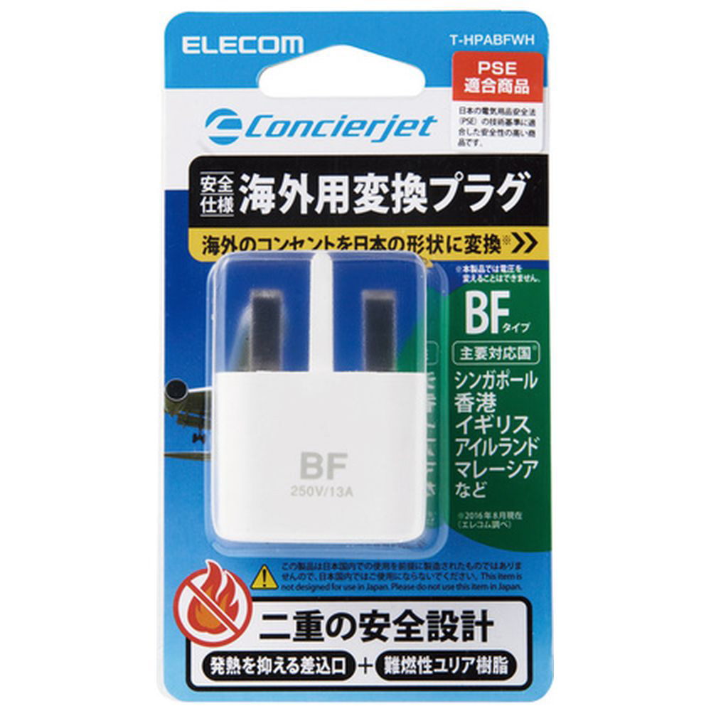海外のBFタイプのコンセントを日本の形状に変換できる、二重の安全設計を採用した変換プラグ。