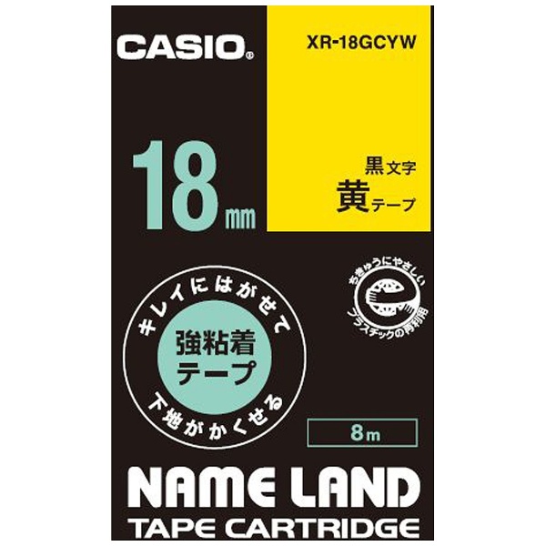 キレイにはがせて下地がかくせる強粘着テープ NAME LAND(ネームランド) 黄 XR-18GCYW [黒文字 /18mm幅]